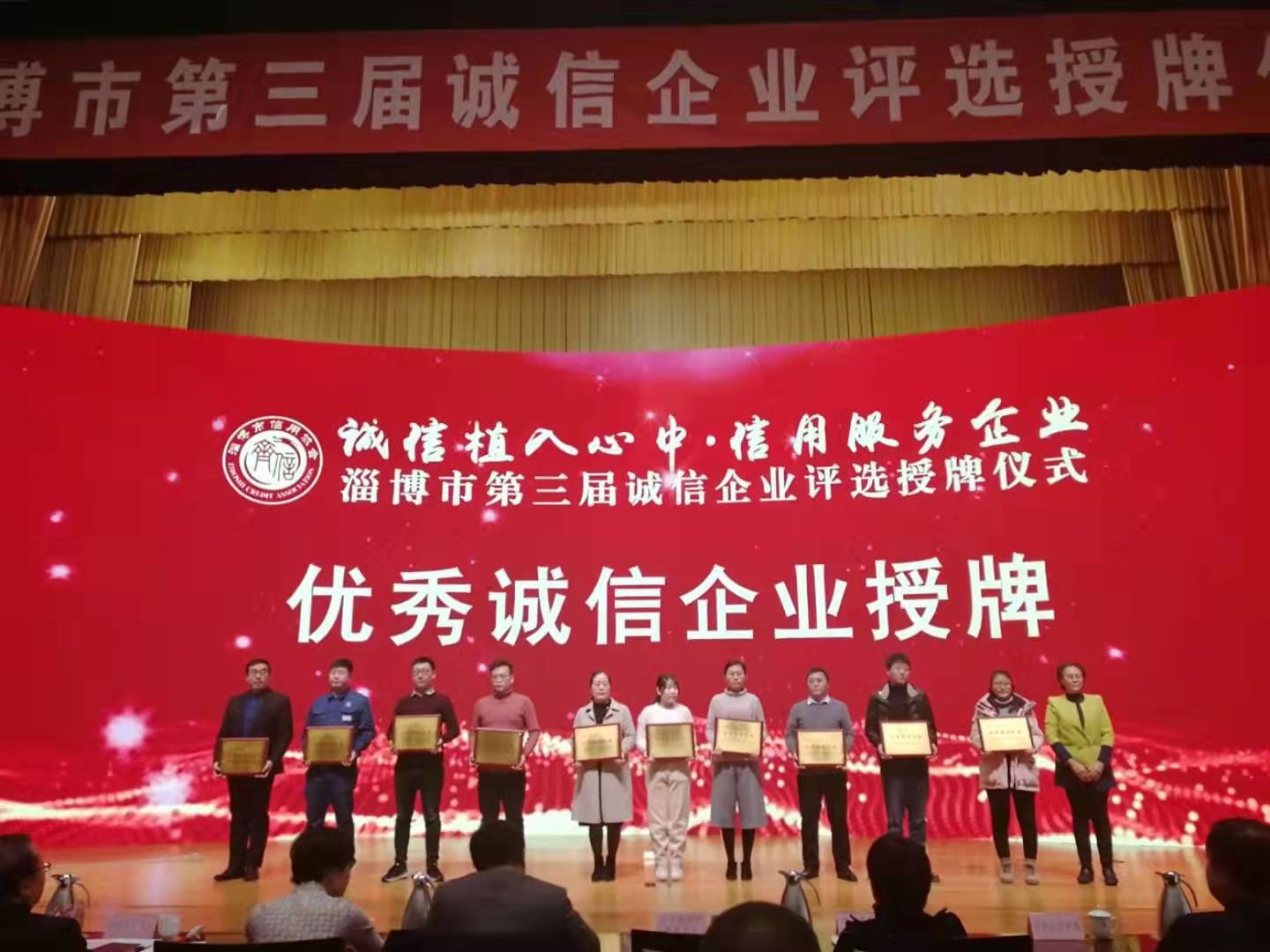 會(huì)上由山東省信用協(xié)會(huì)秘書長王正、淄博市發(fā)展和改革委員會(huì)副縣級干部王立法、淄博市信用協(xié)會(huì)會(huì)長趙玲等為獲獎(jiǎng)企業(yè)頒獎(jiǎng)。