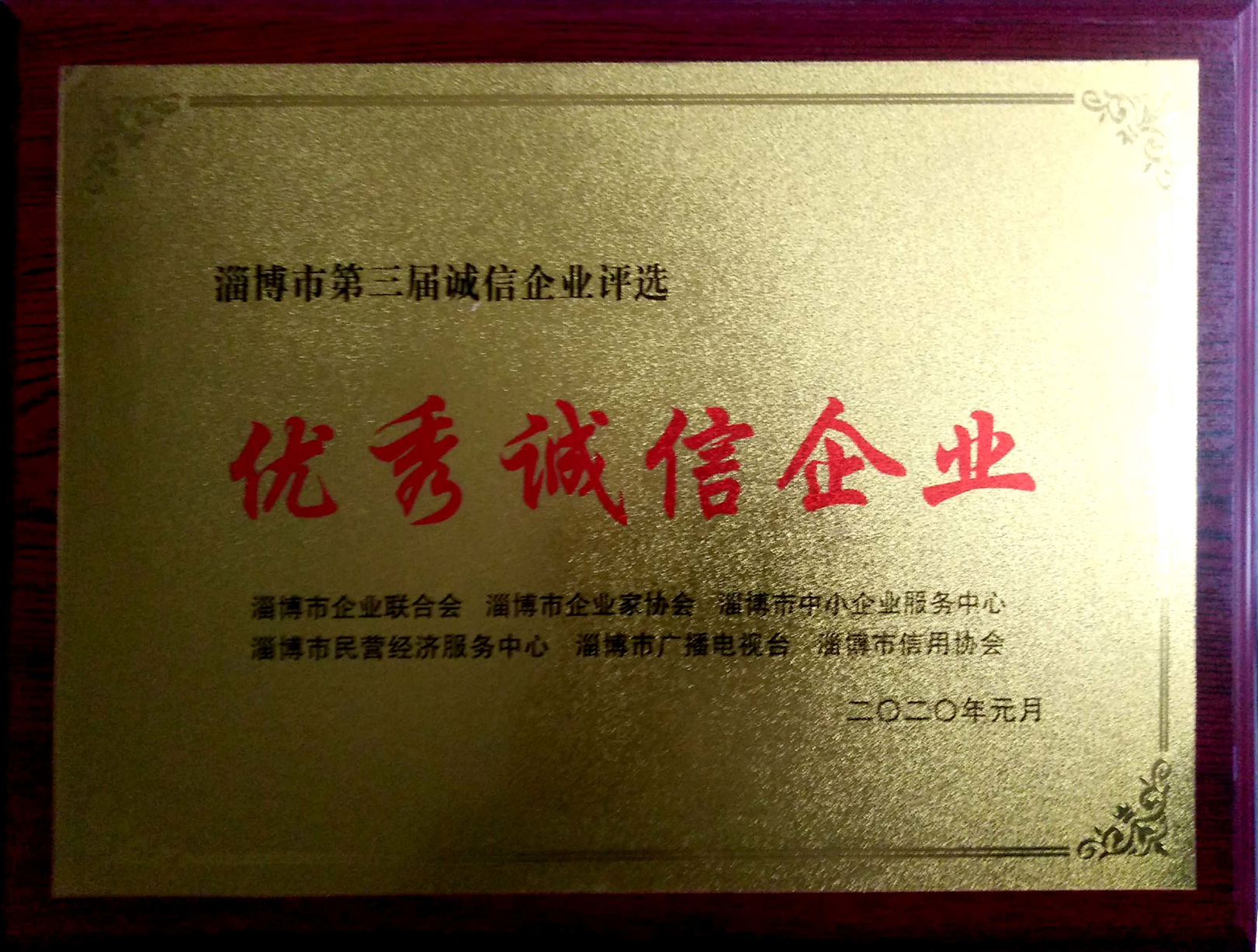 公司榮獲“淄博市優(yōu)秀誠信企業(yè)”稱號