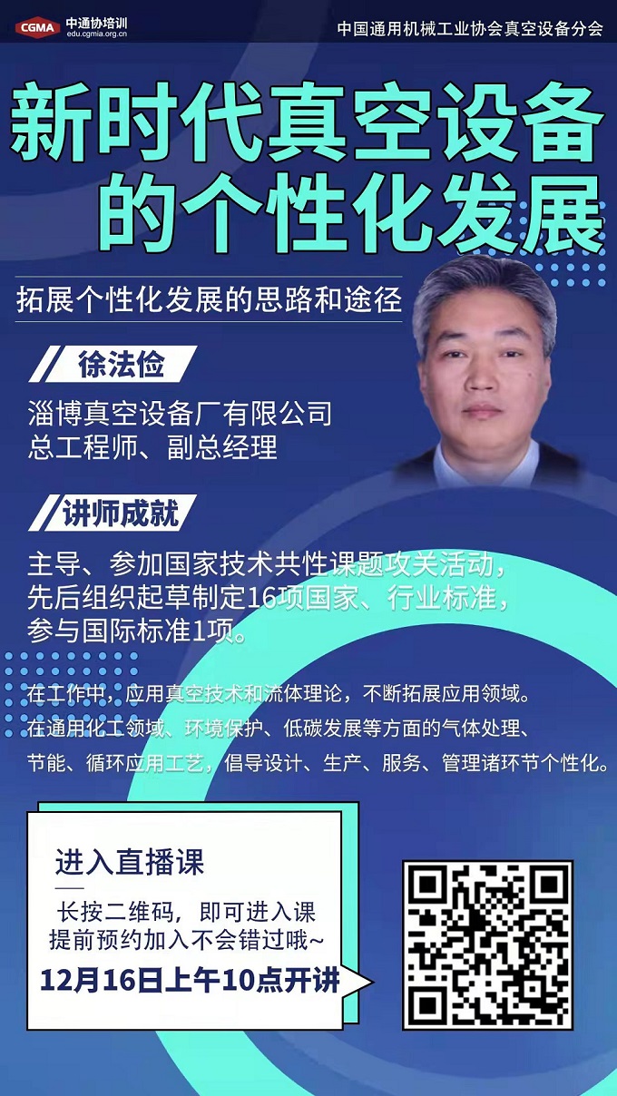 本次講座時間為:1216日上午10點整,專題為《新時代真空設(shè)備的個性化發(fā)展》,歡迎大家提前完成注冊,準(zhǔn)時在線收聽,交流互動。