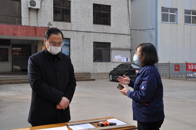 疫情無情人有情,眾志成城渡難關。抗擊疫情,舉國都是一家人,自疫情發(fā)展以來,區(qū)委區(qū)政府、辦事處的領導不止一次的來到企業(yè),了解公司的實際情況。2月8日城西辦事處領導積極主動與企業(yè)聯(lián)系,嚴把企業(yè)復工前的疫情防控關,為企業(yè)逐步恢復安全有序的生產經營環(huán)境提供有力保障。2月20日區(qū)委書記劉忠遠,組織部部長楊發(fā)磊一行先后蒞臨公司,實地調研公司的疫情防控和復工復產情況,聽取了公司疫情的防控介紹,了解企業(yè)生產經營、防控物資儲備情況,深入探討解決公司當前面臨的困難和問題。